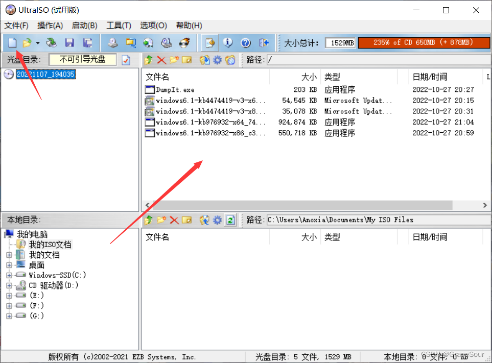 我们可以把自己想要传入到虚拟机中的东西,用 Ultra 打包成 iso 镜像,然后直接丢进去。